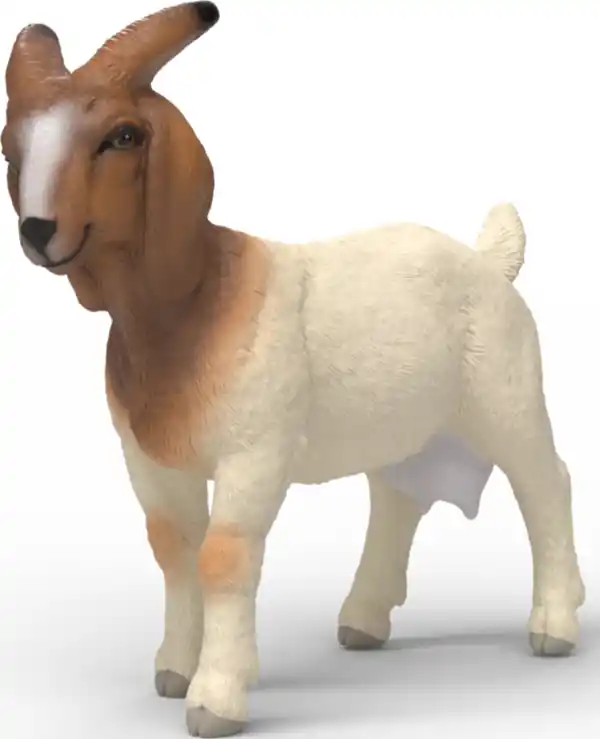 Die Burenziege hat dichtes, weißes Fell und einen markant braunen Kopf mit langen Hängeohren. Auch der Hals ist braun gefärbt. Die robuste Burenziege fühlt sich bei jedem Wetter wohl – ganz gleich, ob heiß oder kalt. Das und ihr neugieriges Wesen machen die pflegeleichte Ziege zu einer beliebten Bauernhofbewohnerin.