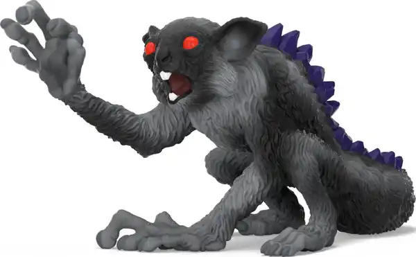 Das Schatten-Fingertier ist ein Lemur und kann deshalb sehr gut klettern. Mit seinen langen Fingern klammert es sich in luftiger Höhe an den Bäumen fest. So pechschwarz, wie es ist, kann man diesen hinterlistigen Bewohner der Schattenwelt von ELDRADOR® kaum sehen. Dort oben spitzt der Lemur die großen Ohren und hört sofort, wenn jemand in sein Reich eindringt. Im Baum sitzend lauert der Schatten-Lemur seinen Gegnern auf und schwingt sich geschickt von Ast zu Ast, bis es sich plötzlich und wie aus dem Nichts auf sie stürzt. Vorsicht – mit dem ist nicht gut Kirschen essen!