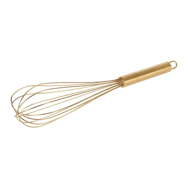 Schneebesen in Goldfarben.