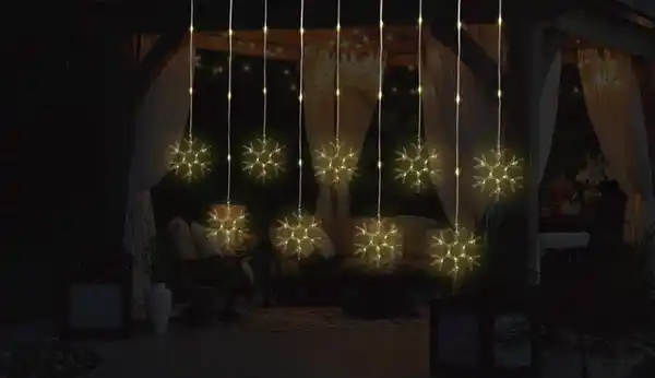 Die Schneeflocken-Lichterkette mit 121 LEDs in warmweiß, IP44, 3xAA Timer ist die perfekte Ergänzung für Ihre festliche Weihnachtsbeleuchtung. Die filigranen Schneeflocken-Elemente sorgen für eine stimmungsvolle Atmosphäre auf Balkonen, Fensterbänken, Treppen oder im Garten. Dank IP44-Schutz ist die Lichterkette auch für den Außeneinsatz geeignet, während der Timer eine einfache Steuerung der Beleuchtung ermöglicht.