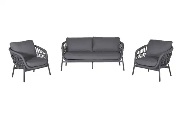 Gartenmöbelset aus der Serie Bari mit Gestell aus Aluminium in Anthrazit mit dunkelgrauem Seil umwickelt, bequem gepolsterste Sitzkissen,