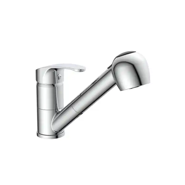 mit 90° schwenkbarem Auslauf|2-fach verstellbare Geschirrbrause für flexible Einsatzmöglichkeiten|komfortable Bedienung durch ausziehbaren Brauseschlauch|inklusive geräuscharmer, auswechselbarer Qualitäts-Kartusche|Montageset mit flexiblen Metall-Anschlussschläuchen an das Hauswassersystem;