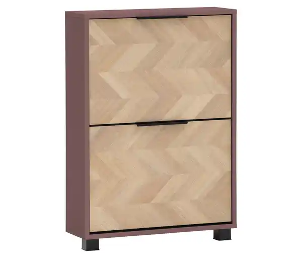 Schuhkipper »Piazza«, 2 Klappen, mauve und Fischgräten-Dekor Farbe: Mauve. Front Fischgräten-Dekor. Griffe und Füße matt schwarz Material: Spanplatte, melaminharzbeschichtet. Griffe und Beschläge Metall. Füße Kunststoff Maße: B x H x T ca. 59,8 x 85,7 x 19,5 cm. Länge Griffleiste ca. 20 cm. Höhe Füße ca. 4,5 cm Inhalt: Inkl. Montageanleitung Gewicht: Gewicht ca. 16,5 kg Gebrauchsanweisung: Mit einem feuchten, nicht nassen Tuch reinigen. Pflegeprodukte sind nicht notwendig Warnhinweise: Beiliegende Montageanleitung vollständig beachten Sonstige Hinweise: Artikel wird zerlegt geliefert. Lieferung in 1 Packstück. Anlieferung frei Haus. Keine Inselbelieferung. B x H x T Packstück ca. 40 x 10,5 x 89 cm Ein Element aus der Piazza-Möbel-Serie2 Klappen mit 1-reihigen SchuhtrommelnKlappen in Fischgräten DekorPlatz für ca. 6 Paar Schuhe bis Schuhgröße 44/45, Schuhlänge ca. 33 cmPlatzsparend durch geringe TiefeKlappenbeschlag mit Einrastung zum sicheren Öffnen und SchließenWandbefestigung erforderlichEinfache Montage mit verständlicher AufbauanleitungMADE IN GERMANY