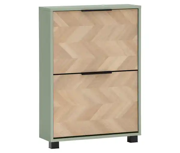 Schuhkipper »Piazza«, 2 Klappen, pistazie und Fischgräten-Dekor Farbe: Pistazie. Front Fischgräten-Dekor. Griffe und Füße matt schwarz Material: Spanplatte, melaminharzbeschichtet. Griffe und Beschläge Metall. Füße Kunststoff Maße: B x H x T ca. 59,8 x 85,7 x 19,5 cm. Länge Griffleiste ca. 20 cm. Höhe Füße ca. 4,5 cm Inhalt: Inkl. Montageanleitung Gewicht: Gewicht ca. 16,5 kg Gebrauchsanweisung: Mit einem feuchten, nicht nassen Tuch reinigen. Pflegeprodukte sind nicht notwendig Warnhinweise: Beiliegende Montageanleitung vollständig beachten Sonstige Hinweise: Artikel wird zerlegt geliefert. Lieferung in 1 Packstück. Anlieferung frei Haus. Keine Inselbelieferung. B x H x T Packstück ca. 40 x 10,5 x 89 cm Ein Element aus der Piazza-Möbel-Serie2 Klappen mit 1-reihigen SchuhtrommelnKlappen in Fischgräten DekorPlatz für ca. 6 Paar Schuhe bis Schuhgröße 44/45, Schuhlänge ca. 33 cmPlatzsparend durch geringe TiefeKlappenbeschlag mit Einrastung zum sicheren Öffnen und SchließenWandbefestigung erforderlichEinfache Montage mit verständlicher AufbauanleitungMADE IN GERMANY