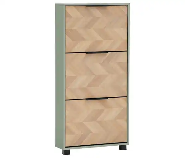 Schuhkipper »Piazza«, 3 Klappen, pistazie und Fischgräten-Dekor Farbe: Pistazie. Front Fischgräten-Dekor. Griffe und Füße matt schwarz Material: Melaminharzbeschichtete Spanplatte. Griffe und Beschläge Metall. Füße Kunststoff Maße: B x H x T ca. 59,8 x 124,5 x 19,5 cm. Länge Griffleiste ca. 20 cm. Höhe Füße ca. 4,5 cm Inhalt: Inkl. Montageanleitung Gewicht: Gewicht ca. 23 kg Gebrauchsanweisung: Mit einem feuchten, nicht nassen Tuch reinigen. Pflegeprodukte sind nicht notwendig Warnhinweise: Beiliegende Montageanleitung vollständig beachten Sonstige Hinweise: Artikel wird zerlegt geliefert. Lieferung in 1 Packstück. Anlieferung frei Haus. Keine Inselbelieferung. B x H x T Packstück ca. 40,5 x 9,5 x 128 cm Ein Element aus der Piazza-Möbel-Serie3 Klappen mit 1-reihigen SchuhtrommelnKlappen in Fischgräten DekorPlatz für ca. 9 Paar Schuhe bis Schuhgröße 44/45, Schuhlänge ca. 33 cmPlatzsparend durch geringe TiefeKlappenbeschlag mit Einrastung zum sicheren Öffnen und SchließenWandbefestigung erforderlichEinfache Montage mit verständlicher AufbauanleitungMADE IN GERMANY