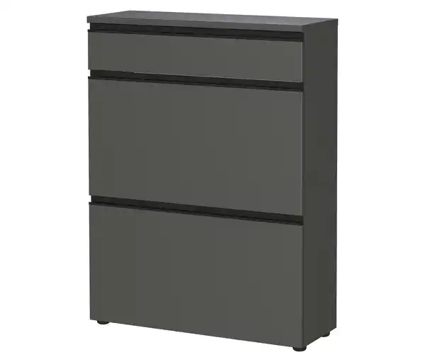 Schuhschrank »Baldone«, graphit Farbe: Graphit Material: Spanplatte und Metall Maße: B x H x T ca. 80 x 107 x 29 cm Inhalt: Inkl. Montageanleitung Gewicht: Ca. 30 kg Tragkraft: Oberboden max. 15 kg Schublade max. 5 kg Schuhkipper je max. 7 kg Gebrauchsanweisung: Keine alkoholhaltigen Mittel, Schleifmittel oder statisch aufgeladene Staubreiniger verwenden Mit einem trockenen Tuch wischen Montage unter Berücksichtigung der Angaben in der Aufbauanleitung Warnhinweise: Bitte die Anweisungen und Sicherheitshinweise der beiliegenden Aufbauanleitung berücksichtigen Sonstige Hinweise: Artikel wird zerlegt geliefert Lieferung in 1 Packstück Anlieferung frei Verwendungsstelle Keine Inselbelieferung B x H x T Packstück ca. 44 x 17,5 x 115,6 cm Gewicht Packstück ca. 30 kg Hersteller-Artikel-Nummer: 1175-547 Hersteller: Germania Werk Krome GmbH & Co. KG, Schützenstraße 88, 33189 Schlangen E-Mail: info@mygermania.com Schuhschrank 1175-547 in GraphitKratzfeste, widerstandsfähige OberflächenbeschichtungStoß- und schlagfeste KantenGriffleiste aus pulverbeschichtetem Metall Geringe Tiefe – ideal für schmale FlureUmweltfreundlich ohne Styropor verpackt MADE IN GERMANY