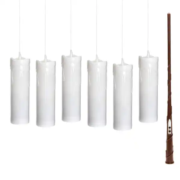 IC-Home Schwebende LED-Stumpenkerze 6tlg. Mit warmweißer LED - simuliert eine echte Flamme Fernbedienung in Zauberstaboptik Ca. 1,5 m-Faden zum Aufhängen Inkl. Batterien 3 Jahre GarantieKerzengröße Ø 5 cm Höhe ca. 19 cmLieferumfang 1x Schwebende LED-Stumpenkerze 6tlg.
