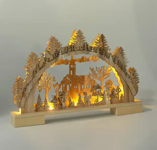 versch. Weihnachtskulissen, Holz natur oder weiß, 10 LEDs, batteriebetrieben, 29 x 4,5 x 19 cm (B x H x T), (ohne Batterien)