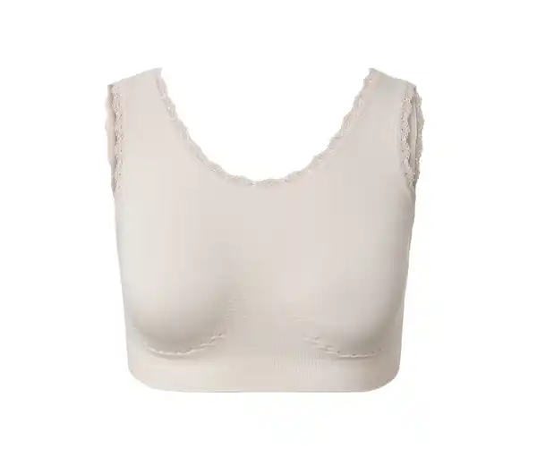 Seamless-Bustier, creme Farbe: Creme Material: 92% Polyamid, 8% Elasthan Spitze 87% Polyamid, 13% Elasthan Bequem, weich und anschmiegsamNahtlose Verarbeitung – liegt angenehm auf der Haut Mit zarter SpitzeMit hochwertigem Markenelasthan für Langlebigkeit und hohe WaschbeständigkeitGr. 36/38 empfehlen wir ca. 75–80A, 70–80B, 75C Gr. 40/42 empfehlen wir ca. 85A, 80–85B, 75–80C Gr. 44/46 empfehlen wir ca. 85–95C, 80–90D Gr. 48/50 empfehlen wir ca. 90–95D, 85–90E