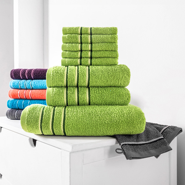 ### Hochwertige Frottierwaren "Rantum" - 100% Baumwolle - Pflegeleicht und strapazierfähig - Schnell trocknend und voluminös - Hohe Saugfähigkeit - Mit praktischem Aufhänger - **Hochwertige Streifen-Bordüre** - Designs: Aqua, Koralle, Petrol oder **NEU:** Grün, Pflaume, Beton **Ausführungen:** - **Gästetuch 5er-Set** je ca. 30 x 50 cm - **Handtuch 2er-Set** je ca. 50 x 100 cm - **Duschtuch** ca. 70 x 140 cm - **Waschhandschuhe 6er-Set** je ca. 16 x 21 cm 6 x Pflaume oder 3 x Koralle + 3 x Beton (nicht alle Ausführungen in allen Farben erhältlich) - - - - - - Artikel mit "Andere Ausführungen online" sind ab sofort in dieser oder anderer Ausführung unter www.norma24.de bestellbar. \* Preis inkl. MwSt. zzgl. Versandkosten zzgl. evtl. anfallender Stückgutkosten. je Ausführung
