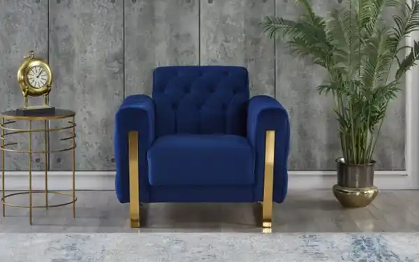 Ausführung mit weichem Stoffbezug Soft in Blau, komfortable Federkern Polsterung, formschöne goldfarbige Metallfüße,