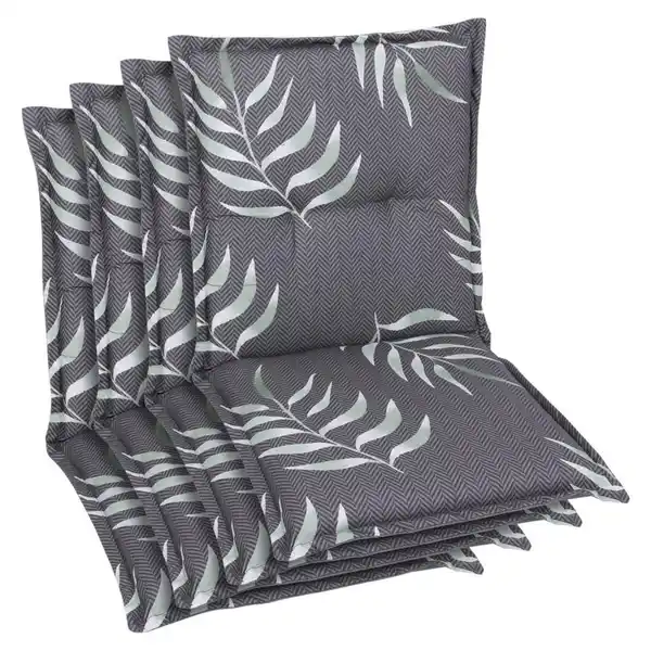 Sesselauflagenset, in der Farbe Anthrazit, aus dem Material Textil Der Artikel ist ein 4-teiligs Set. und das Design Blätter. Die Füllung besteht aus Schaumstoff, Vlies. Der Artikel hat eine Größe von 50x7x100 cm., hat die Auszeichnung: Oeko-Tex® Standard 100., die Besonderheiten des Artikels sind pflegeleicht, hochwertige Qualität, langlebig, für den Außenbereich geeignet, mittels Bändern zu befestigen, Gurtband befestigen.