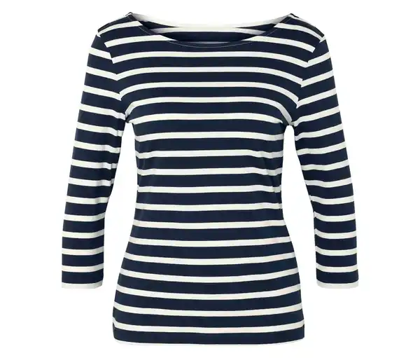 Shirt mit 3/4-Arm, dunkelblau gestreift Farbe: Dunkelblau-weiß gestreift Material: 95% Baumwolle, 5% Elasthan (Creora®) Maße: Gesamtlänge ca. 63,5 cm (Gr. M 40/42) Passform: Slim Fit Besonders weiche Baumwoll-Stretch-QualitätU-Boot-AusschnittMit Elasthan: formbeständig, perfekter Sitz, hoher TragekomfortGOTS organic – in conversion, zertifiziert durch CU 809415