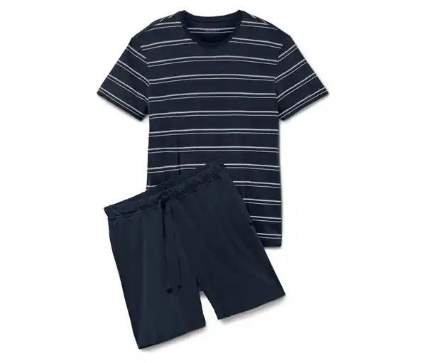 Shorty-Pyjama Farbe: Oberteil navy-grau gestreift Hose navy Material: 100% Baumwolle Maße: Oberteil Gesamtlänge ca. 77 cm Hose Innenbeinlänge ca. 16 cm (Gr. L 52/54) Passform: Regular Fit Schlafanzug in weicher Single-Jersey-QualitätHose mit seitlichen Eingrifftaschen, elastischem Bund und BindebändernOberteil mit RundhalsausschnittMit nachhaltiger BaumwolleGOTS organic – in conversion, zertifiziert durch CU 809415Online bis Gr. 4XL