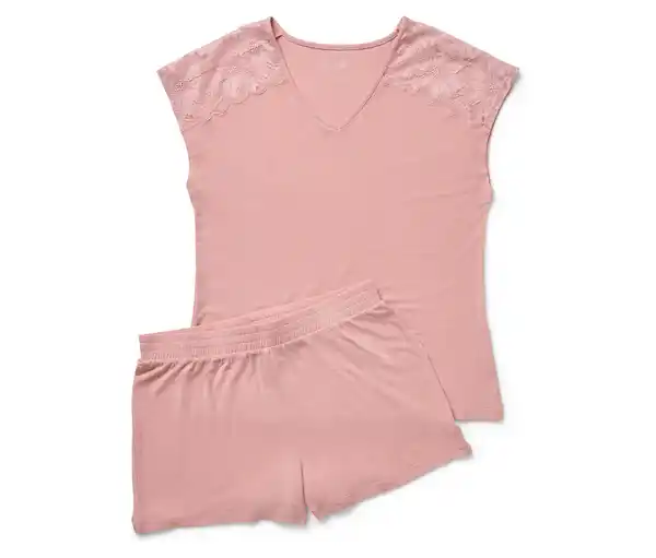 Shorty-Pyjama-Set Farbe: Rosé Material: 95% Modal, 5% Elasthan Spitze 84% Polyamid, 16% Elasthan Maße: Oberteil Gesamtlänge ca. 64 cm (Gr. M 40/42) Kurzer Schlafanzug in besonders weicher Modal-Stretch-QualitätV-AusschnittSchulterbereich mit zarter SpitzeShorts mit elastischem BundMit hochwertigem Markenelasthan für Langlebigkeit und hohe Waschbeständigkeit