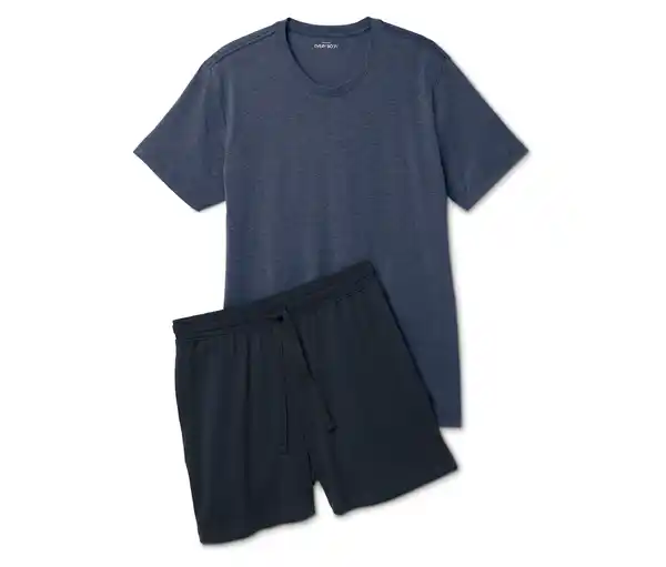 Shorty-Pyjama-Set, blau/navy Farbe: Oberteil blau meliert Hose navy Material: 100% Baumwolle Maße: Oberteil Gesamtlänge ca. 77 cm Hose Innenbeinlänge ca. 16 cm (Gr. L 52/54) Passform: Regular Fit Weiche Single-Jersey-QualitätReine BaumwolleHose mit seitlichen Eingrifftaschen, elastischem Gummibund und BindebändernOberteil mit Rundhalsausschnitt Online bis Gr. 4XL