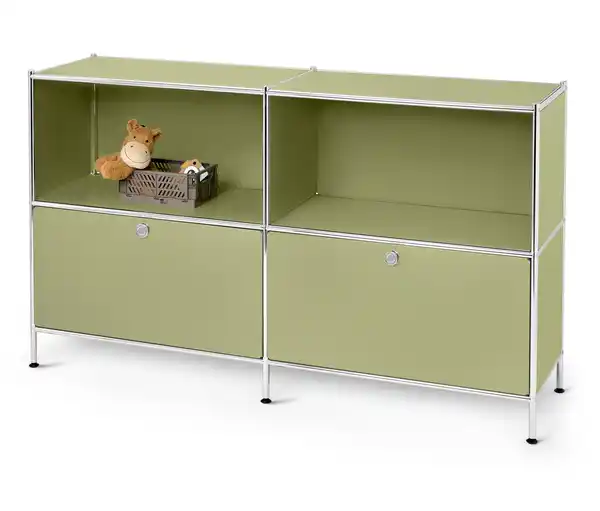 Sideboard Metall »CN3 Kids« mit 2 Schubladen, pistazie Farbe: Flächen glänzend pistazie Gestell und Griffe chromfarben Material: Gestell Stahl, verchromt Flächen Stahl, pulverbeschichtet Füße Kunststoff Verbindungsteile Kunststoff, verchromt Maße: B x H x T ca. 152 x 89,5 x 40 cm B x H x T Schubladen innen je ca. 70 x 13,5 x 33,5 cm B x H x T offene Fächer je ca. 73 x 36,5 x 40 cm Inhalt: Inkl. Wandbefestigung, Füßen, Bodenschonern, Montagematerial und -anleitung Tragkraft: Oberboden und Fachböden je max. 40 kg Schubladen je max. 8 kg Sonstige Hinweise: Artikel wird zerlegt geliefert Lieferung in 2 Packstücken Ein Element unserer »CN3 Kids«-Metall-Möbel-SerieDieses Produkt ist vielseitig mit anderen Möbeln aus der Serie kombinierbarStauraummöbel mit Platz für Spielzeug, Kuscheltiere und andere Gegenstände2 Schubladen mit seitlichem VollauszugOberflächen mit hochwertiger, strapazierfähiger Pulverbeschichtung Verchromtes Metallgestell und KnaufgriffeInkl. höhenverstellbarer Kunststofffüße – fester Stand auch auf unebenen Flächen