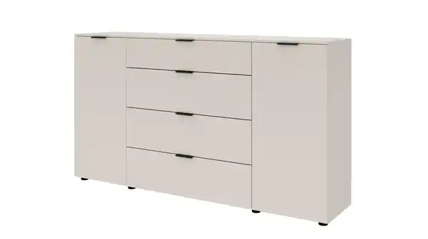 Das Sideboard LINZ begeistert mit einem geradlinigen Design, das sich nahtlos in moderne Wohnräume einfügt. Der Farbton Kaschmir Beige schenkt jedem Raum eine behagliche, einladende Atmosphäre. Schwarze Griffe setzen elegante Akzente und schaffen einen stilvollen Kontrast. Diese Kombination aus ruhiger Farbgebung und klarer Formensprache macht LINZ zu einem echten Lieblingsstück - zeitlos schön.