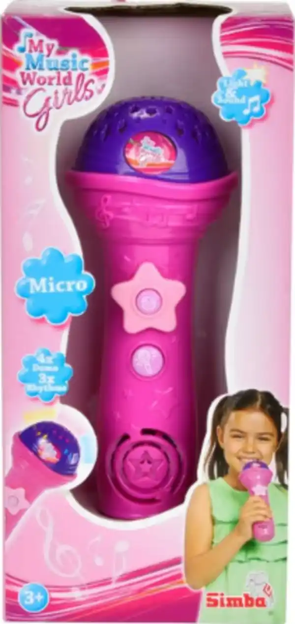 Mit dem My Music World Shining Mikro wird jeder zum Star. Das Mikrofon hat tolle Lichteffekte, kann 3 Rhythmen und 4 Demos abspielen, ist 20cm lang und für Kinder ab 3 Jahren geeignet.