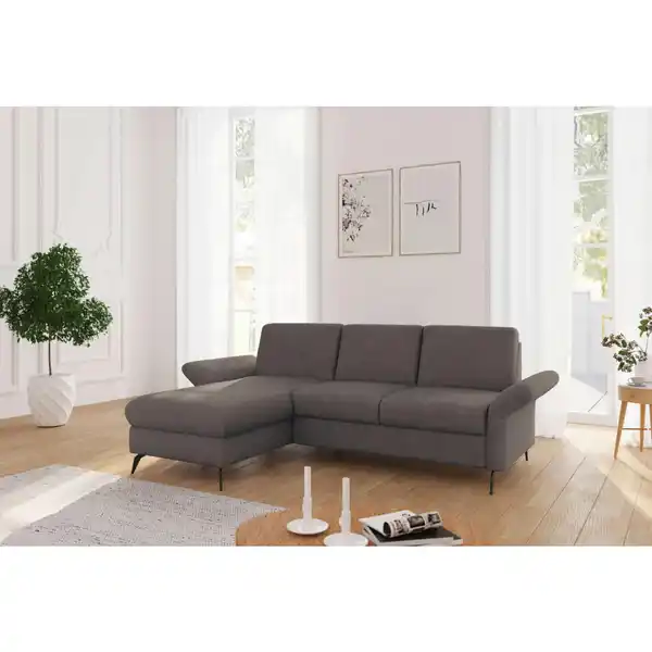 Sit & MoreECKSOFA Rochelle E, in der Farbe Schlamm, aus dem Material Textil, Es handelt sich um einen 4,5-Sitzer. die Form des Artikels ist Ottomane links, L-Form. Der Artikel hat eine Größe von 251x164 cm., hat die Auszeichnung: Goldenes M, Oeko-Tex® Standard 100, Made in Europe, DGM-Klimapakt., die Besonderheiten des Artikels sind Rücken echt, Armteil links, rechts.