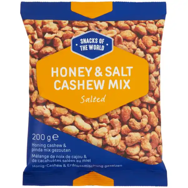 Lust auf eine kleine Knabberei? Dann ist dieser ultimative Mix aus Süß und Salzig genau das Richtige: ein Knabbermix aus Erdnüssen und Cashewkernen, umhüllt von einer Schicht gesalzenem Honig.