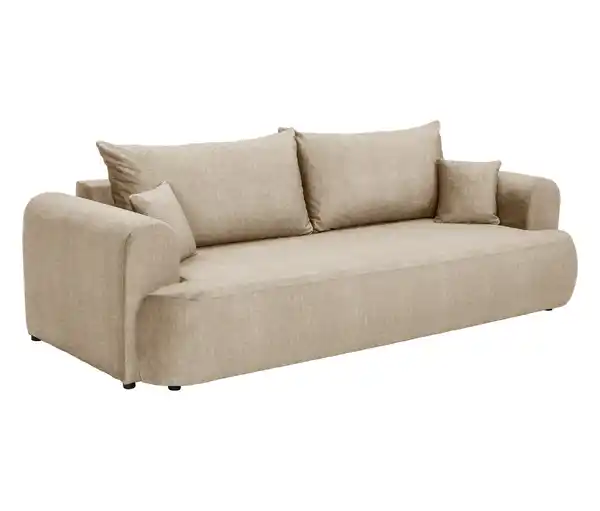 Sofa 2,5-Sitzer mit Auszugsbett »DreamAble«, beige Farbe: Beige Material: Bezug 100% Polyester. Gestell Massivholz und Holzwerkstoffe. Sitz Wellenunterfederung, Polyätherschaum und Diolenabdeckung. Lehne Diolenabdeckung. Rückenkissen lose mit Schaumstoffflocken-Füllung. Füße Kunststoff Maße: B x H x T ca. 255 x 86 x 117 cm. Sitzbreite ca. 200 cm. Sitztiefe ca. 66 cm. Sitzhöhe ca. 40 cm. Breite Armlehne ca. 27 cm. Höhe Armlehne ca. 27 cm. Höhe Rückenkissen je ca. 50 cm. Fußhöhe ca. 5 cm. Liegefläche Bett ca. 200 x 160 cm. B x H x T Stauraum ca. 197 x 20 x 68 cm. Kissen 2x je ca. 33 x 33 cm, 2x je ca. 100 x 50 cm Inhalt: Inkl. 12 Filzgleitern Gewicht: Gewicht ca. 100 kg Tragkraft: Tragkraft je Sitz max. 120 kg Gebrauchsanweisung: Mit einer feinen Polsterdüse leicht absaugen. Flecken sofort nach dem Entstehen beseitigen. Flüssigkeiten sofort mit einem saugfähigen Küchenpapier oder Tuch abtupfen – nicht reiben! Fetthaltige und säurehaltige Verschmutzungen mit lauwarmem, destillierten Wasser großflächig, von Naht zu Naht, mit einem feuchten, sauberen Tuch, z. B. Geschirrtuch oder einem sauberen Schwamm reinigen. Für eiweißhaltige Flecken (z. B. Blut) muss eiskaltes Wasser verwendet werden. Zur Fleckentfernung ist Feuchtigkeit notwendig. Auf keinem Fall feuchte Flecken oder Stellen mit dem Föhn bearbeiten, das Material könnte beschädigt werden. Im feuchten bzw. nassen Zustand nicht auf das Möbel setzen. Dies kann Dehnungen, Mulden oder Falten geben, die meist nicht mehr zu entfernen sind. Immer mindestens 1-2 Tage vor Benutzung trocknen lassen. Niemals mit Lösungsmitteln arbeiten (z. B. Fleckenentferner, Terpentin, Benzin) und auf gar keinen Fall mit dem Dampfreiniger hantieren. Die Beseitigung von schwierigen Flecken (Kaugummi, Kugelschreiber etc.) ist ein Fall für Fachpersonal. Technische Details: • Scheuertouren: 105.000 • Pilling: 4-5 • Lichtechtheit: 4-5 • Reibechtheit: trocken/nass 4-5 Sonstige Hinweise: Artikel wird zerlegt geliefert. Lieferung in 3 Packstücken per Spedition (2-Mann-Handling). Keine Inselbelieferung. B x H x T Packstücke 1x ca. 202 x 52 x 70 cm, 1x ca. 248 x 42 x 101 cm, 1x ca. 94 x 26 x 68 cm. Gewicht Packstücke 1x ca. 28 kg, 1x ca. 52 kg, 1x ca. 26 kg Hier kostenlos Stoffmuster bestellen: www.tchibo.de/stoffmusterMit wenigen Handgriffen verwandelt sich das Sofa in eine großzügige Liegefläche ‒ perfekt als Gästebett oder entspanntes FernsehenGroßer Bettkasten mit viel Stauraum für Bettwäsche, Decken oder KissenGroße Rückenkissen zusätzliche Zierkissen sorgen für ein besonders angenehmes Sitz- und LiegegefühlDie gerundeten Ecken und das voluminöse Design verleihen dem Sofa eine moderne, harmonische Ausstrahlung ‒ fügt sich in viele Stilrichtungen einDer Veloursbezug kombiniert Haptik wie Samt mit hoher AbriebfestigkeitDie außergewöhnlich tiefe Sitz- und Liegefläche bietet viel Platz zum Ausstrecken, Kuscheln oder EntspannenHersteller: Max Winzer®