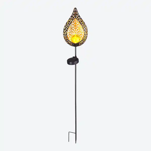 Dieser Solar-Stab Flamme von Home schafft mit seinem dekorativen Flammendesign und der Leuchtfarbe Warmweiß eine stimmungsvolle Atmosphäre in Ihrem Außenbereich. Er ist ca. 90 cm hoch, überzeugt durch Metall und Glas in Crackleoptik, verfügt über einen stabilen Erdspieß und ist in zwei Ausführungen erhältlich. Solar-Stab mit dekorativem Flammendesign Stilvolle Crackleoptik aus Glas Höhe ca. 90 cm Aus robustem Metall gefertigt Leuchtfarbe Warmweiß für angenehmes Licht Mit praktischem Erdspieß für festen Stand Ideal für Garten und Terrasse In zwei Ausführungen erhältlich
