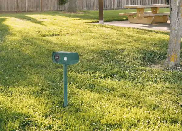 Das Solar-Tierabwehrgerät arbeitet mit Ultraschall, der für Tiere unangenehm ist und sie somit effektiv vertreibt.
