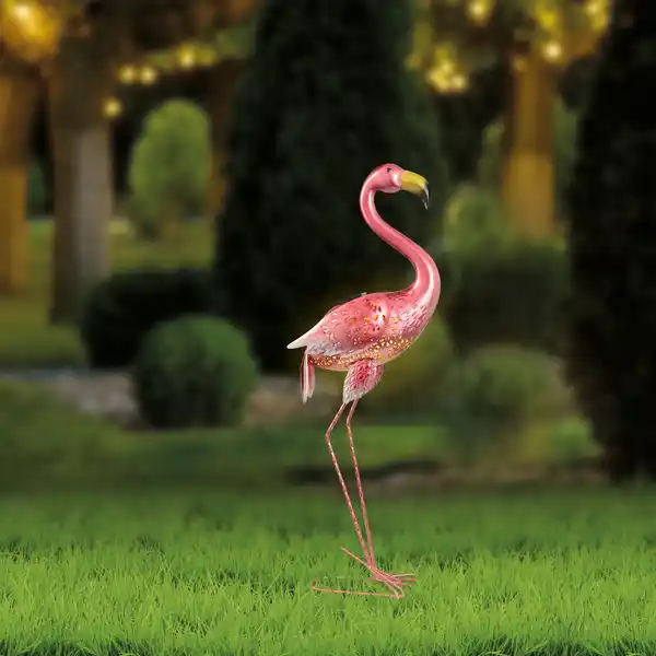 Dieser Solar-Vogel von Home ist eine dekorative Solarleuchte für den Außenbereich. Mit Höhen von ca. 85 cm (Flamingo) und ca. 88 cm (Pfau) setzen Sie stimmungsvolle Akzente im Garten. Die warmweiße LED sorgt für angenehmes Licht, die Befestigung erfolgt einfach per Metallhaken. Solarleuchte Flamingo oder Pfau Dekoratives Design für den Außenbereich Flamingo ca. 85 cm, Pfau ca. 88 cm hoch Aus stabilem Eisen gefertigt Mit Metallhaken zum Verankern in der Erde Warmweiße LED-Beleuchtung On/Off-Schalter am Solarpanel Akku 1x 2/3 AAA 200 mAh Ni-MH