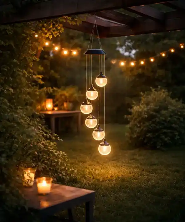 Solar-Windspiel Glaskugeln, schwarz