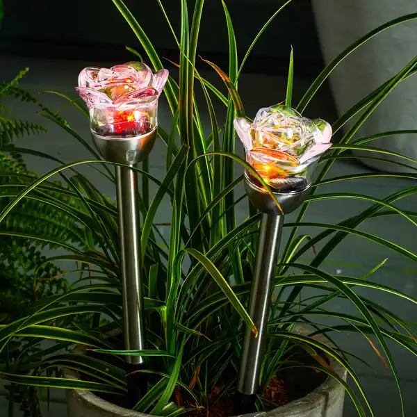Solarstecker "Kristallrose" mit Farbwechsel, ca. 8x37 cm