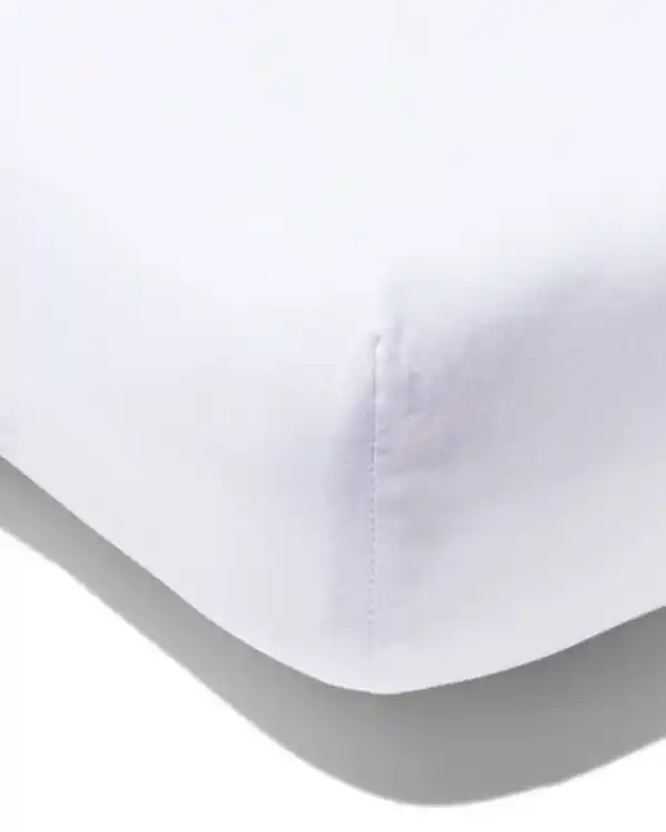 Weißes Spannbettlaken mit Gummizug in den Ecken. Dadurch ist es gut dehnbar und lässt sich leicht über die Ecken ziehen.