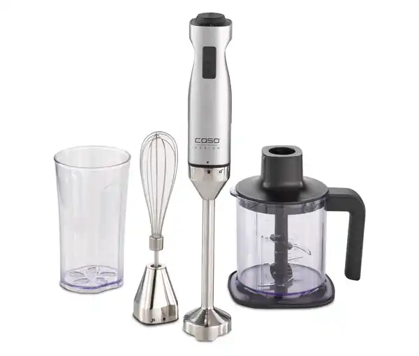 Stabmixer Farbe: Schwarz-edelstahlfarben Maße: B x H x T ca. 145 x 380 x 190 Kabellänger 125 cm Inhalt: Inkl. Schneebesen, Zerkleinerbehälter, Messbecher und Bedienungsanleitung Gewicht: Ca. 1,4 kg Leistung: 1.000 W Energieeffizienz-Angaben: Informationen zur Entsorgung sowie zu Sammelstellen in Ihrer Nähe finden Sie auf www.tchibo.de Gebrauchsanweisung: Einfache Reinigung durch abnehmbare und spülmaschinenfeste Teile Schneebesen für das einfache Aufschlagen von Sahne und Eiweiß Zerkleinerbehälter mit 4-fach-Edelstahlmesser für Kräuter, Gemüse, Fleisch etc. Transparenter Messbecher mit Skalierung Technische Details: Variable Geschwindigkeitsregulierung durch 2 Softpressen Tasten: 1. Stufe: Stufenlos regulierbar 10.000 - 17.000 U/Min. 2. Stufe: Turbo Taste, max. 17.000 U/Min. Sonstige Hinweise: Lieferung in 1 Packstück bis zur Haustür per Postversand Keine Inselbelieferung möglich Kraftvoller 1.000-Watt-Motor für müheloses Pürieren, Mixen und Zerkleinern in SekundenGehäuse aus hochwertigem, eloxiertem AluminiumPürierstab mit 4 Edelstahl-FlügelmessernErgonomisch geformter Griff für eine angenehme HandhabungEasy Change für eine einfache Montage und Demontage der ZubehörteileEinfache Reinigung durch abnehmbare Teile