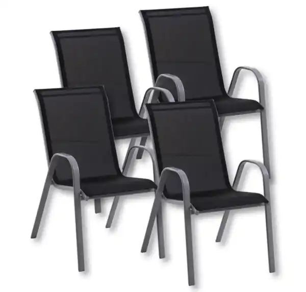 4 Stück, Stahl ummantelt, Bezug aus Textilene, 56 x 92 x 71 cm (B x H x T), Einzelpreis: 34.90, Sie sparen 39.70 Euro gegenüber Einzelkauf 4 Stück