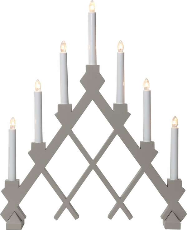 Der Kerzenhalter RUT besteht aus taupefarbenem, spitz zulaufendem Holz sowie aus 7 Kunststoff-Kerzen. Die integrierten LEDs strahlen ein angenehmes, warmweißes Licht aus und stimmen so auf die schöne Weihnachtszeit ein. Ein Schalter am Kabel sorgt für ein