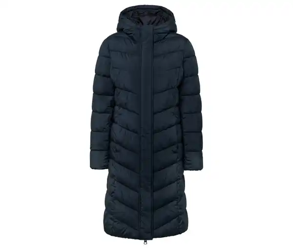 Steppmantel mit Kapuze, dunkelblau Farbe: Dunkelblau Material: 100% Polyester Maße: Gesamtlänge ca. 101,5 cm (Gr. 40) Passform: Regular Fit Weiche, wärmende WattierungVorderseite mit 2-Wege-ReißverschlussZusätzliche Windschutzleiste mit DruckknöpfenEingrifftaschen mit DruckknopfWiener Nähte für eine feminine SilhouetteElastischer Ärmelabschluss