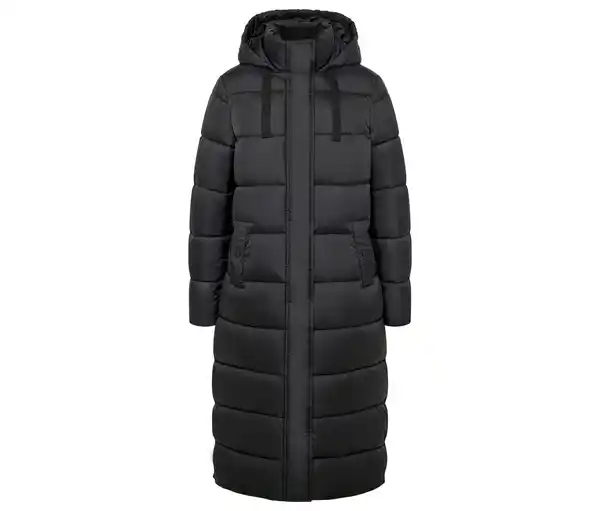 Steppmantel mit Kapuze, schwarz Farbe: Schwarz Material: 100% Polyester Maße: Gesamtlänge ca. 115 cm (Gr. 42) Passform: Regular Fit Weiche und wärmende WattierungWärmendes Fleece-Futter in Kragen und EingrifftaschenKapuze mit TunnelzugVorderseite mit 2-Wege-ReißverschlussZusätzliche Windschutzleiste mit DruckknöpfenSeitliche Eingrifftaschen mit Druckknopf Saum seitlich durch Druckknöpfe erweiterbar für optimale BewegungsfreiheitElastisches Innenbündchen am Ärmelabschluss