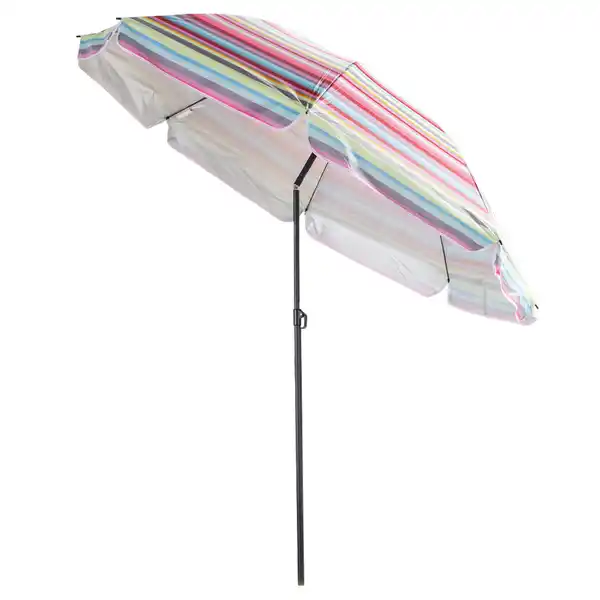 Strand-/ Sonnenschirm - Rot-Pink-Gelb-Hellgrau gestreift