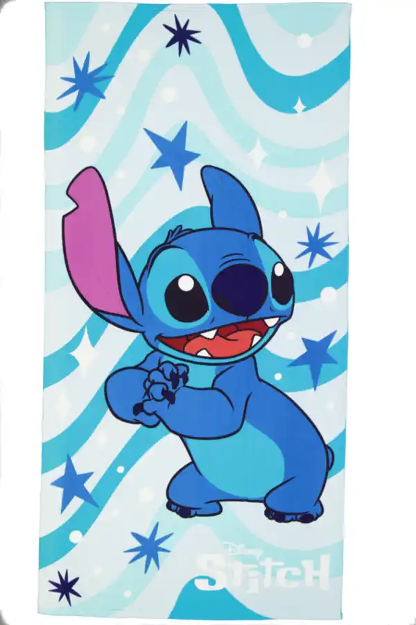Dieses blaue Strandtuch hat einen fröhlichen Stitch-Print mit blauen und violetten Akzenten. Der wellenförmige Hintergrund und die Sterne verleihen ihm einen verspielten Look, sodass das Tuch am Strand oder Pool direkt ins Auge fällt. Der weiche Stoff fühlt sich angenehm an, wenn man darauf liegt oder sich abtrocknet. Dank des großen Formats kannst du dich nach dem Schwimmen schön darauf ausruhen.