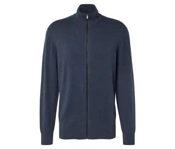 Strickjacke Farbe: Navy meliert Material: 80% Baumwolle, 20% Polyamid Maße: Gesamtlänge ca. 74 cm (Gr. L 52/54) Passform: Regular Fit Form- und farbbeständige Qualität mit hohem BaumwollanteilMit hochschließendem Kragen und ReißverschlussFormstabile Rippbündchen an Ärmeln, Ausschnitt und SaumMit Baumwolle