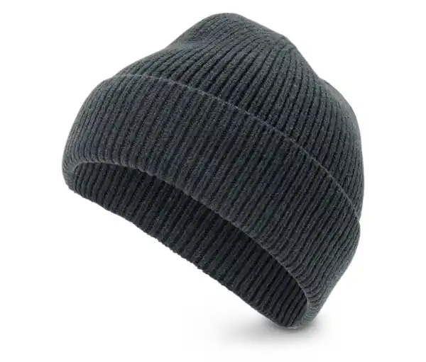 Strickmütze Farbe: Anthrazit meliert Material: 80% Polyacryl, 20% Polyamid Maße: Ca. 23 x 19 cm In RippoptikWeich und wärmend Mit UmschlagbundOne Size