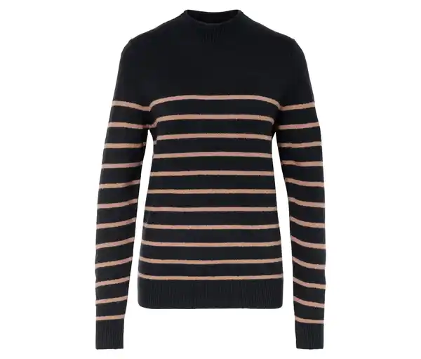 Strickpullover mit Stehkragen, schwarz mit hellbraunen Streifen Farbe: Schwarz mit hellbraunen Streifen Material: 58% Baumwolle (Unterstützt die Initiative Cotton made in Africa), 21% Polyacryl, 19% Polyester, 2% Elasthan Maße: Gesamtlänge ca. 64 cm (Gr. M 40/42) Passform: Regular Fit Weiche Qualität mit BaumwolleElastische Rippbündchen an Stehkragen, Ärmelabschluss und SaumStehkragen mit RollkanteMit Elasthan: formbeständig, perfekter Sitz, hoher TragekomfortUnterstützt die Initiative Cotton made in AfricaDieser Strickpullover unterstützt die Farmer*innen.