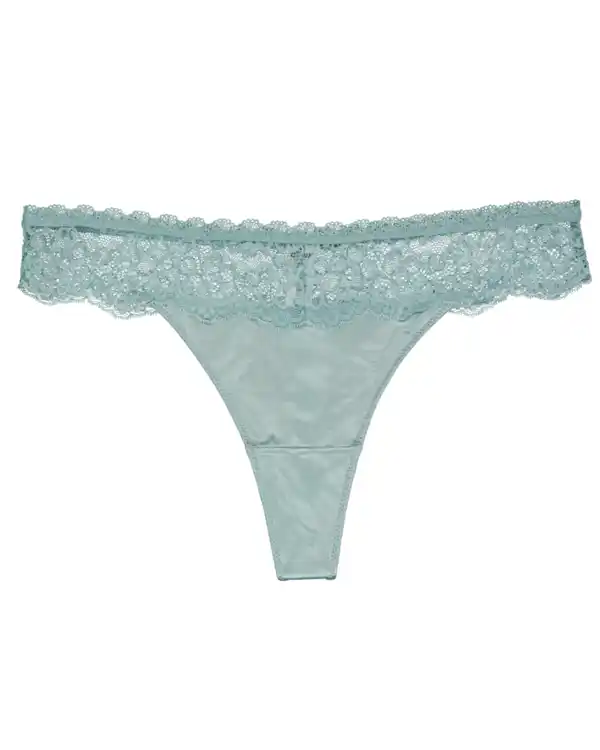 Dieser grüne Damenstring hat einen weichen Spitzenabschluss am oberen Rand. Er fühlt sich angenehm auf der Haut an und sitzt gut unter der Kleidung. Der Stoff aus Polyamid und Elasthan dehnt sich leicht, sodass der String unter einem Rock oder einer eng anliegenden Hose bequem sitzt. Die einfarbige Farbe sorgt für einen schlichten Look.