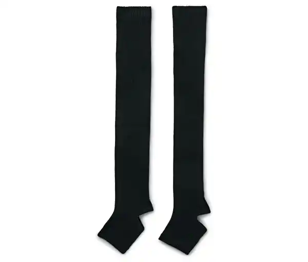 Stulpen Farbe: Schwarz Material: 90% Polyacryl, 9% Polyester, 1% Elasthan (Creora®) Maße: Länge je ca. 53 cm Perfekter Halt durch elastischen Abschluss und Öffnung an der FerseAngenehm weiche Strickqualität – hält Gelenke und Muskeln warmMit Markenelasthan: formbeständig, perfekter Sitz, hoher Tragekomfort Mit Fersenloch – auch über Ballettschuhen tragbarOne Size