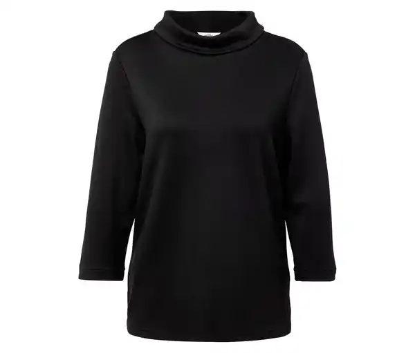 Sweatshirt mit Stehkragen, schwarz Farbe: Schwarz Material: 74% Viskose, 23% Polyester, 3% Elasthan (Creora®) Maße: Gesamtlänge ca. 65 cm (Gr. M 40/42) Passform: Regular Fit Weiche Qualität mit hohem Viskoseanteil3/4-ArmSaum mit SeitenschlitzenBrustabnäher ab Gr. 48/50 für eine optimale PassformMit Elasthan: formbeständig, perfekter Sitz, hoher TragekomfortDieses Sweatshirt beinhaltet Fasern aus nachhaltigem Holz.