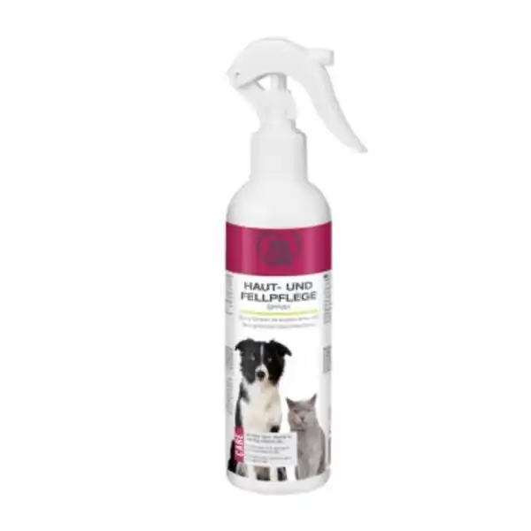 Nicht jedes Tier ist mit einem glänzenden Fell und geschmeidiger Haut gesegnet. Bei vielen Hunden und Katzen müssen Sie daher besonders auf eine natürliche Fellpflege mit hochwertigen Inhaltsstoffen achten. Das Haut- und Fellpflege-Spray von TAKE CARE enthält Aloe-Vera, Vitamin E und Pro-Vitamin B5 um den natürlichen Feuchtigkeitsgehalt der Haut zu unterstützen. Das Spray verleiht stumpfem Fell ein glänzendes Aussehen, neutralisiert unangenehme Gerüche und eignet sich für Hunde und Katzen. Anwendung: TAKE CARE Haut- und Fellpflegespray vor Gebrauch leicht schütteln und dann unmittelbar auf die Hautstellen des Tieres aufsprühen. Bei Bedarf kann das Spray täglich angewendet werden. Bitte sparen Sie die Augenpartie großzügig aus. Darf nicht in die Hände von Kindern gelangen.