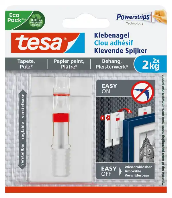 Die smarte Alternative zu Nagel und Schraube > Sicherer Halt auf Tapete und Putz > Auch für strukturierte, empfindliche Untergründe > Kein Werkzeug benötigt > Höhenverstellbar > Spurlos wiederablösbar > Wiederverwendbar (mit neuem Klebestreifen) > Belastbarkeit je max. 2 kg
