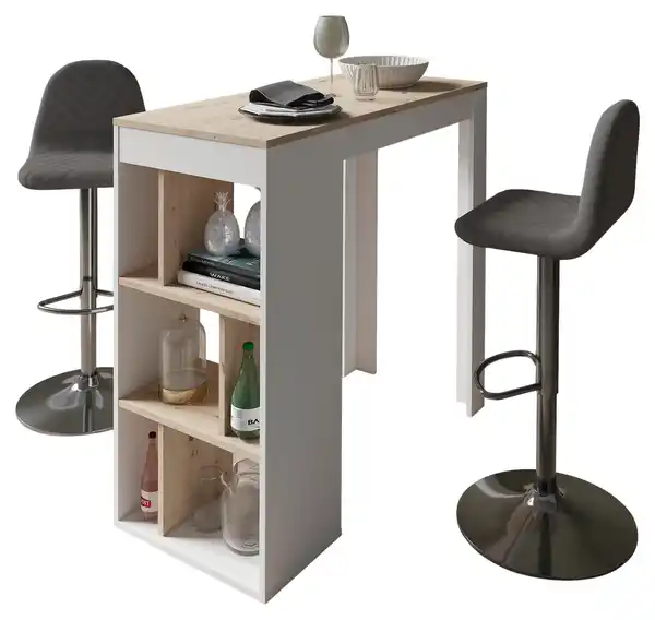 TISCHGRUPPE TG MOBY-CASINO, Anthrazit, Weiß, Chromfarben, Eiche Artisan