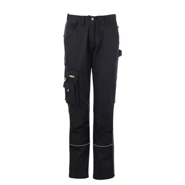 \n- Je Stück - Größe: - Damen: 38-42 - Herren: 48-56 - Farbe: Schwarz oder grau (Herren) - BCI, YKK Reißverschluss, Cordura (Kniepolstertasche) - Pflegehinweis: 40 °C Wäsche, nicht trocknergeeignet - Sonstige Merkmale: Hose mit D-Ring, Sicherheitstasche, Stiftschlaufen, Hammerschlaufen, Zollstocktasche, Multifunktionstaschen und verstärkten Kniepolstertaschen