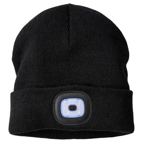 \n- Je Stück - Arbeitsmütze mit abnehmbarem/wiederaufladbarem LED-Frontlicht - Außenmaterial: 54 % Polyester (recycelt), 46 % Acryl - Futter: 100 % Polyester; Polsterung: 65 % Polyethylen, 35 % Polyester - Sonstige: Gestrickte Mützen mit abnehmbarem LED-Frontlicht für Erwachsene - Farben. Schwarz, Blau und Grau - Größen: Einheitsgröße - Pflegehinweise: 30 °C Wäsche, nicht trocknergeeignet